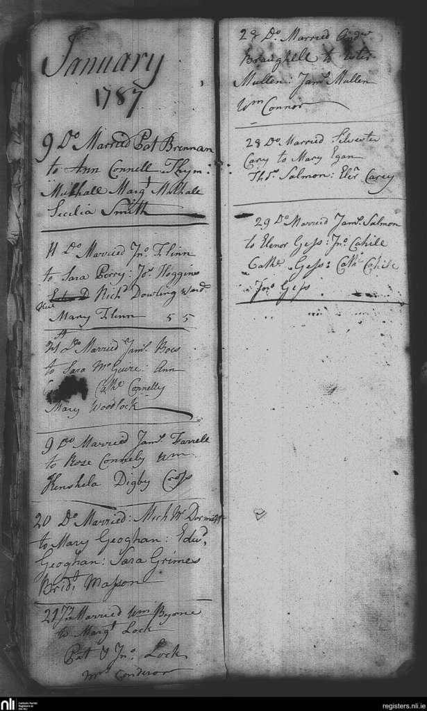 St. Nicholas', Dublin city; County of Dublin; Archdiocese of Dublin. Marriages, Jan. 1787