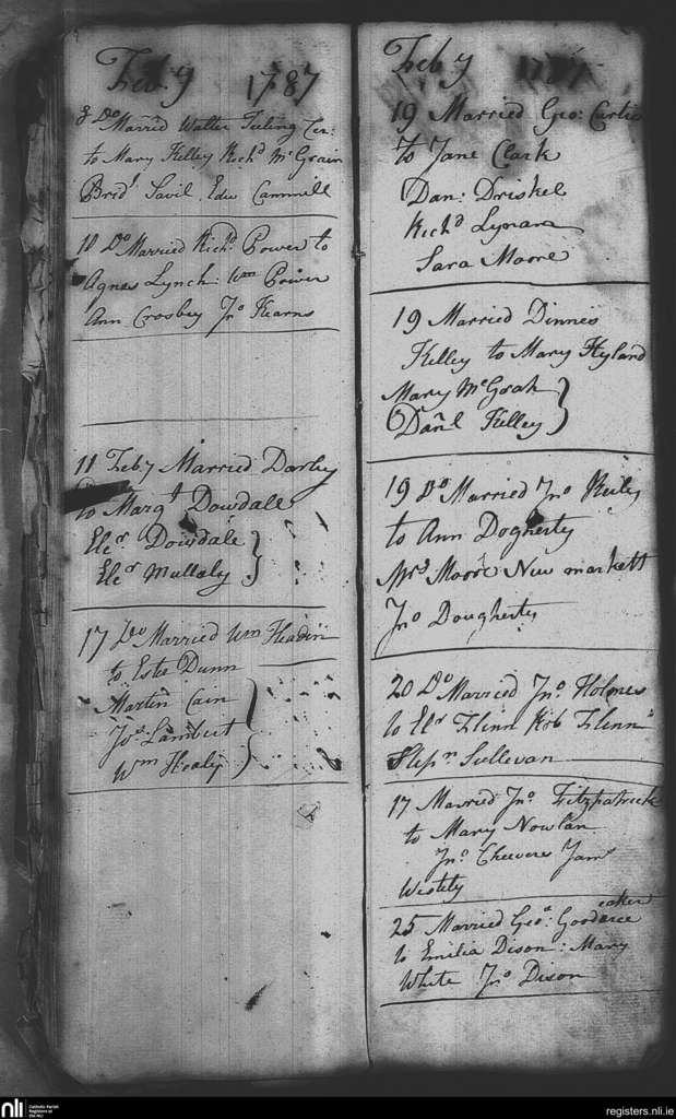 St. Nicholas', Dublin city; County of Dublin; Archdiocese of Dublin. Marriages, Feb. 1787