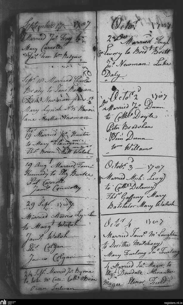 St. Nicholas', Dublin city; County of Dublin; Archdiocese of Dublin. Marriages, Sep. 1787 to Oct. 1787