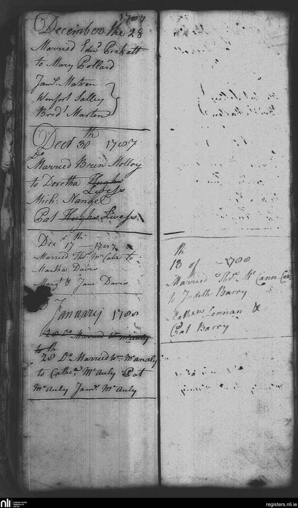 St. Nicholas', Dublin city; County of Dublin; Archdiocese of Dublin. Marriages, Dec. 1787 to Jan. 1788
