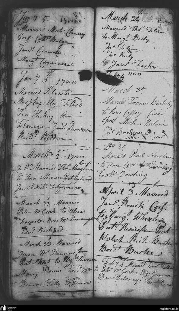 St. Nicholas', Dublin city; County of Dublin; Archdiocese of Dublin. Marriages, Jan. 1788 to Apr. 1788