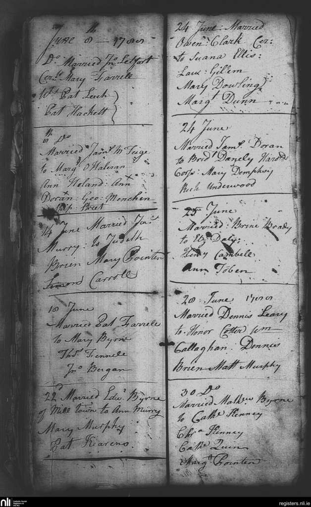 St. Nicholas', Dublin city; County of Dublin; Archdiocese of Dublin. Marriages, June 1788