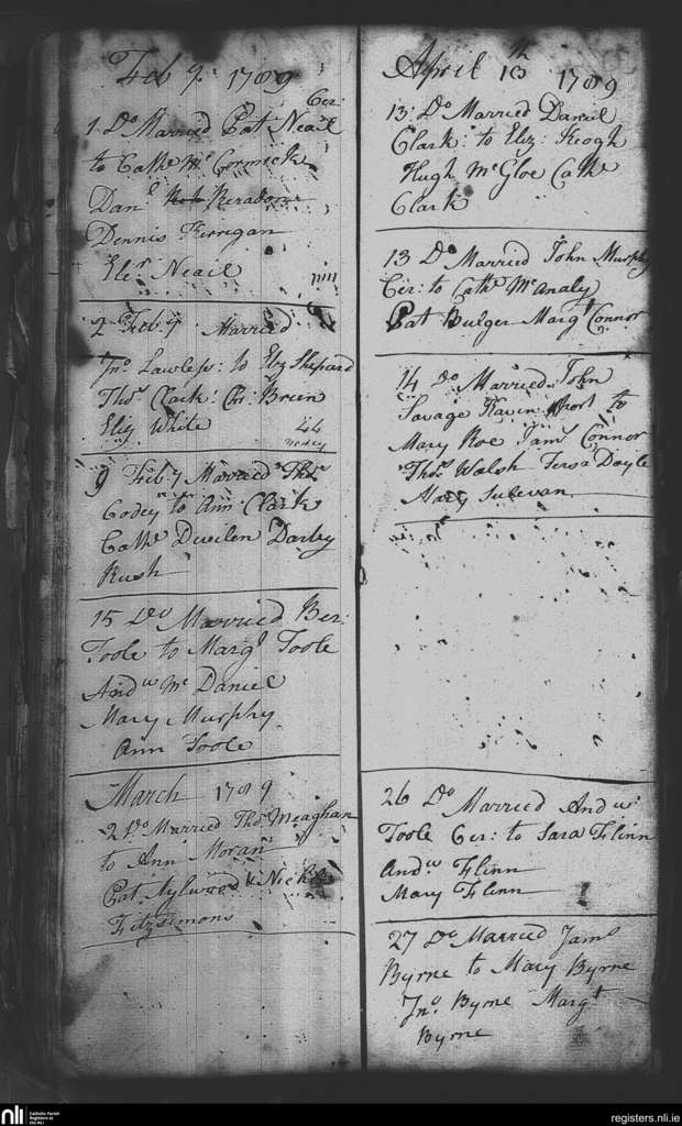 St. Nicholas', Dublin city; County of Dublin; Archdiocese of Dublin. Marriages, Feb. 1789 to Apr. 1789