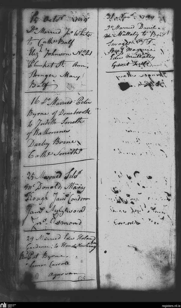 St. Nicholas', Dublin city; County of Dublin; Archdiocese of Dublin. Marriages, Oct. 1789 to Nov. 1789