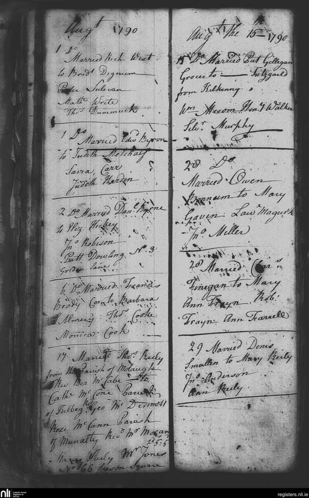St. Nicholas', Dublin city; County of Dublin; Archdiocese of Dublin. Marriages, Aug. 1790