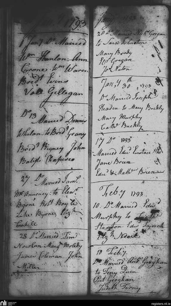 St. Nicholas', Dublin city; County of Dublin; Archdiocese of Dublin. Marriages, Jan. 1793 to Feb. 1793