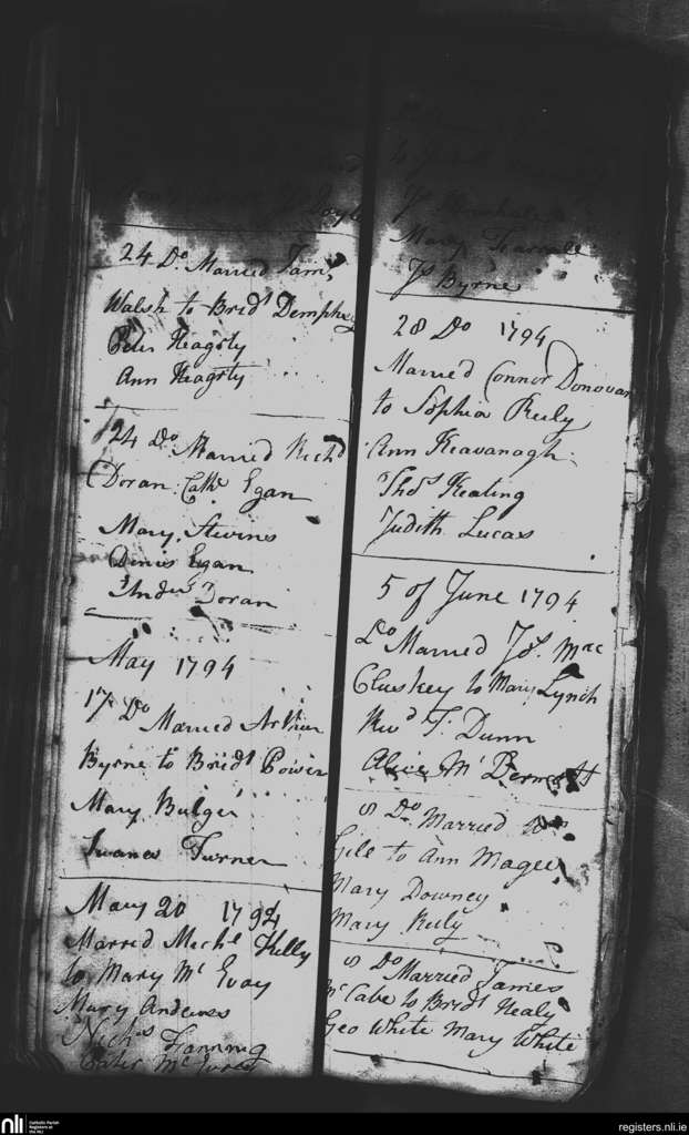 St. Nicholas', Dublin city; County of Dublin; Archdiocese of Dublin. Marriages, Apr. 1794 to June 1794