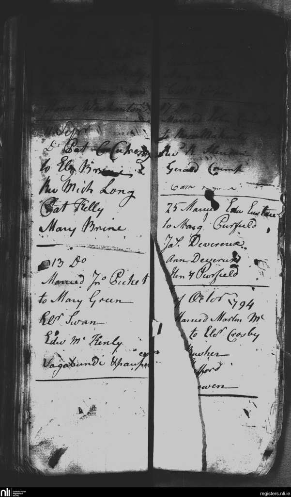 St. Nicholas', Dublin city; County of Dublin; Archdiocese of Dublin. Marriages, Sep. 1794 to Oct. 1794