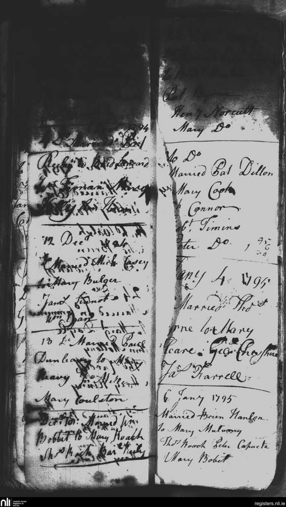 St. Nicholas', Dublin city; County of Dublin; Archdiocese of Dublin. Marriages, Dec. 1794 to Jan. 1795