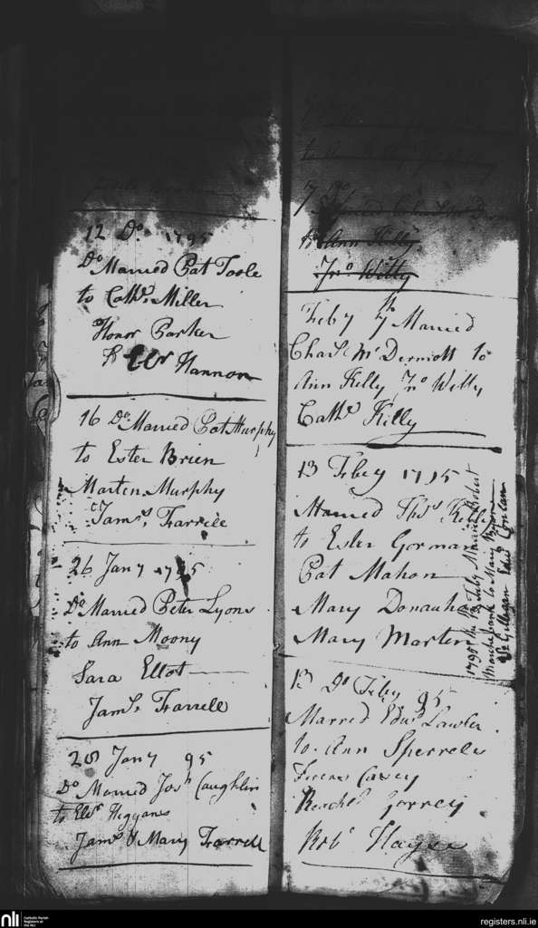 St. Nicholas', Dublin city; County of Dublin; Archdiocese of Dublin. Marriages, Jan. 1795 to Dec. 1795