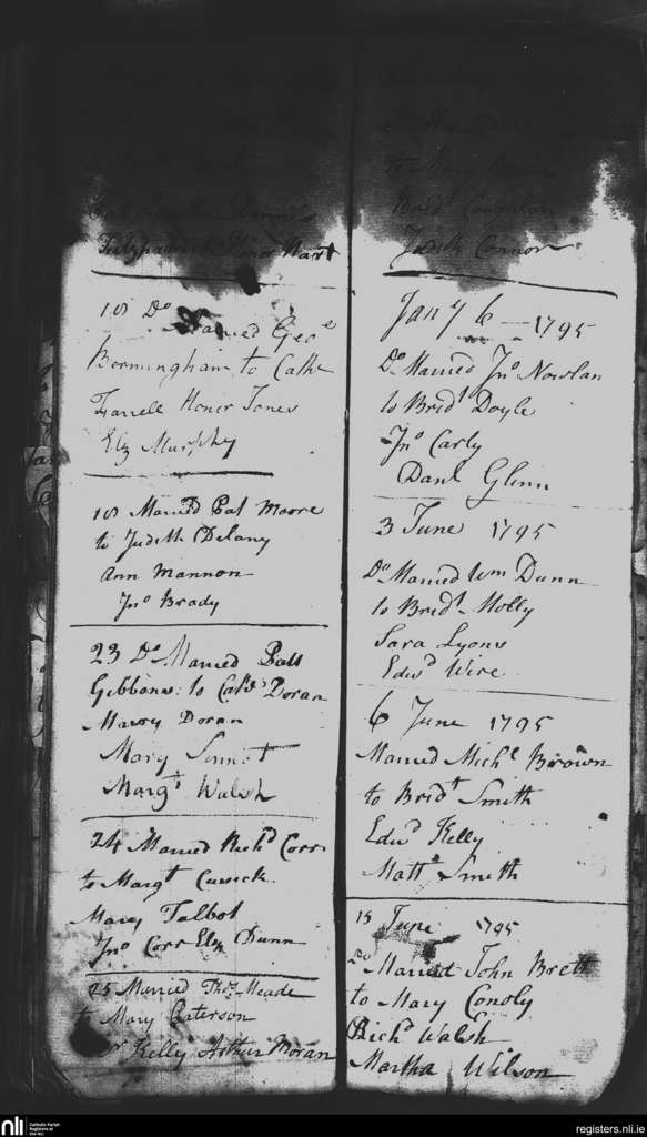 St. Nicholas', Dublin city; County of Dublin; Archdiocese of Dublin. Marriages, Jan. 1795 to June 1795