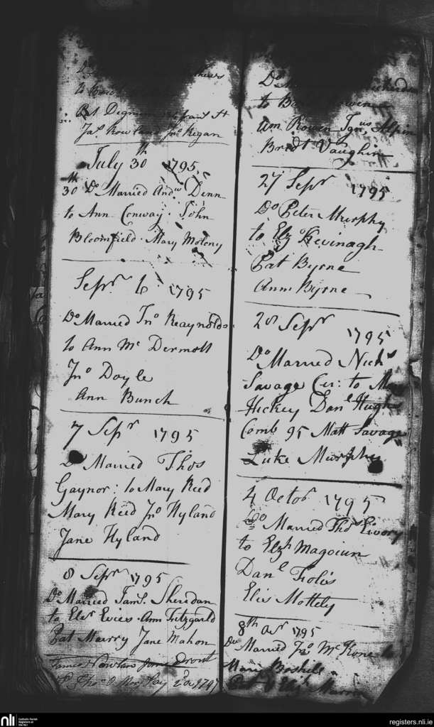 St. Nicholas', Dublin city; County of Dublin; Archdiocese of Dublin. Marriages, July 1795 to Oct. 1795