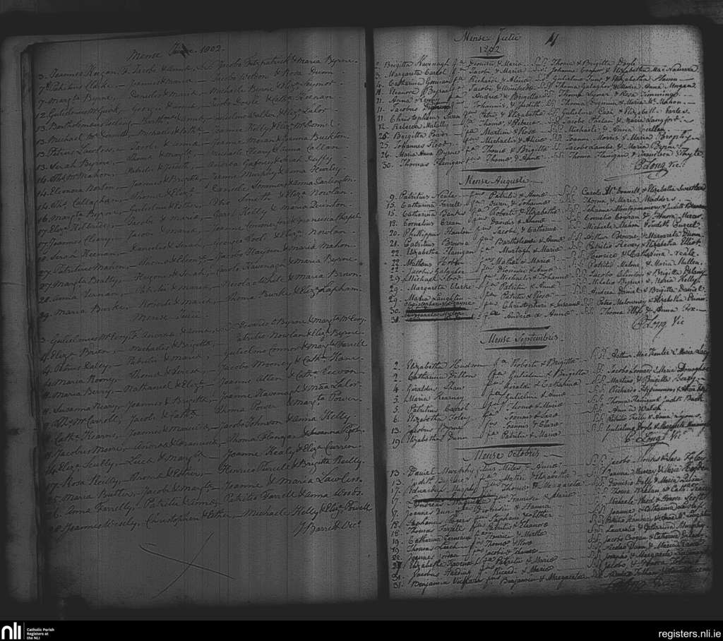 St. Nicholas', Dublin city; County of Dublin; Archdiocese of Dublin. Baptisms, June 1802 to Oct. 1802