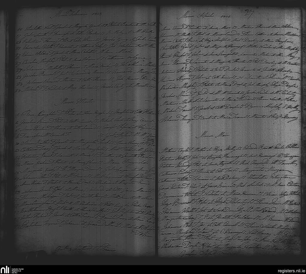 St. Nicholas', Dublin city; County of Dublin; Archdiocese of Dublin. Baptisms, Feb. 1803 to May 1803