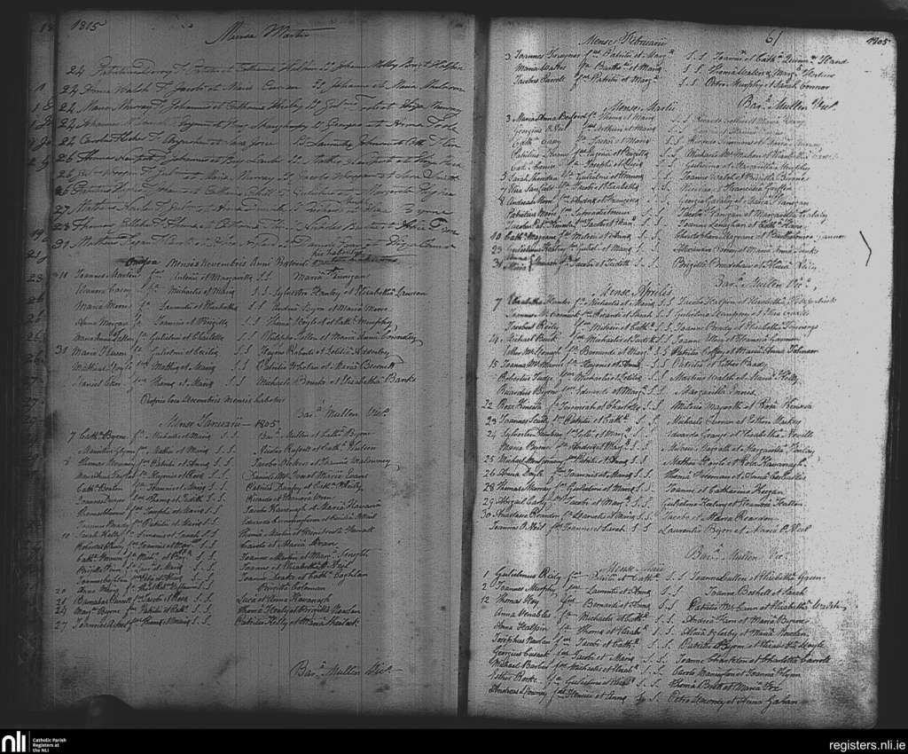 St. Nicholas', Dublin city; County of Dublin; Archdiocese of Dublin. Baptisms, Jan. 1805 to Nov. 1805