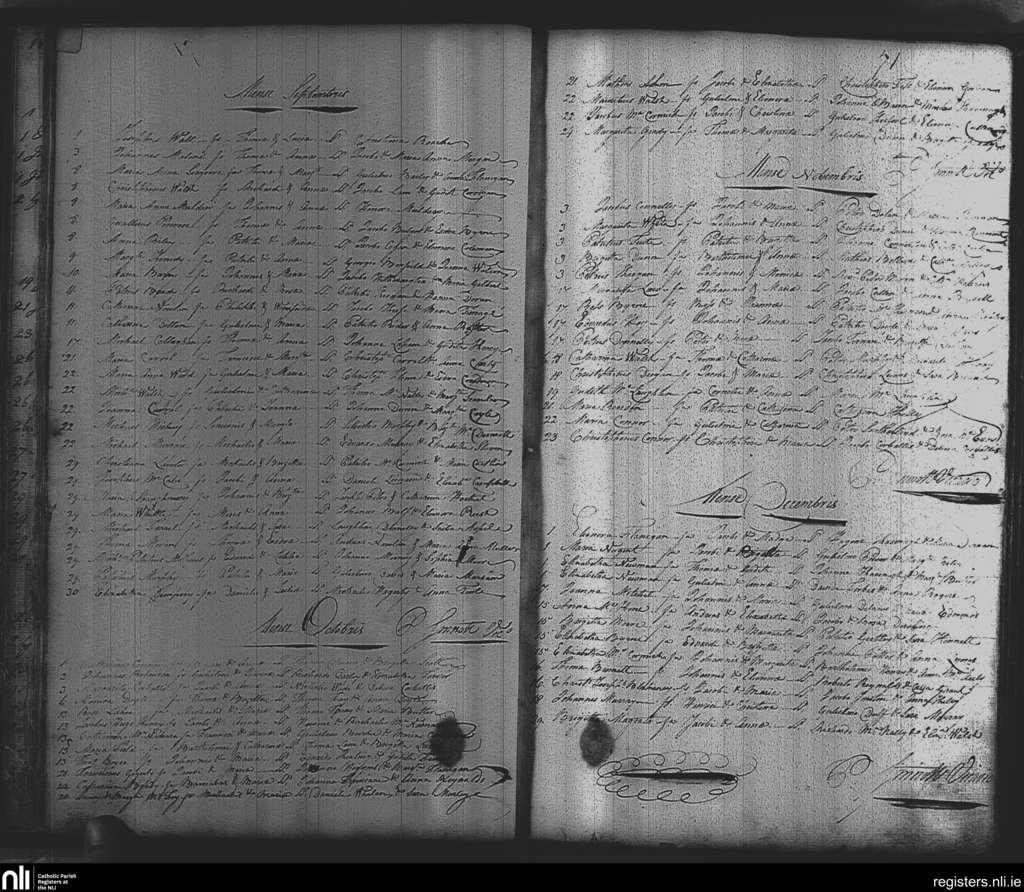 St. Nicholas', Dublin city; County of Dublin; Archdiocese of Dublin. Baptisms, Sep. 1805 to Dec. 1805
