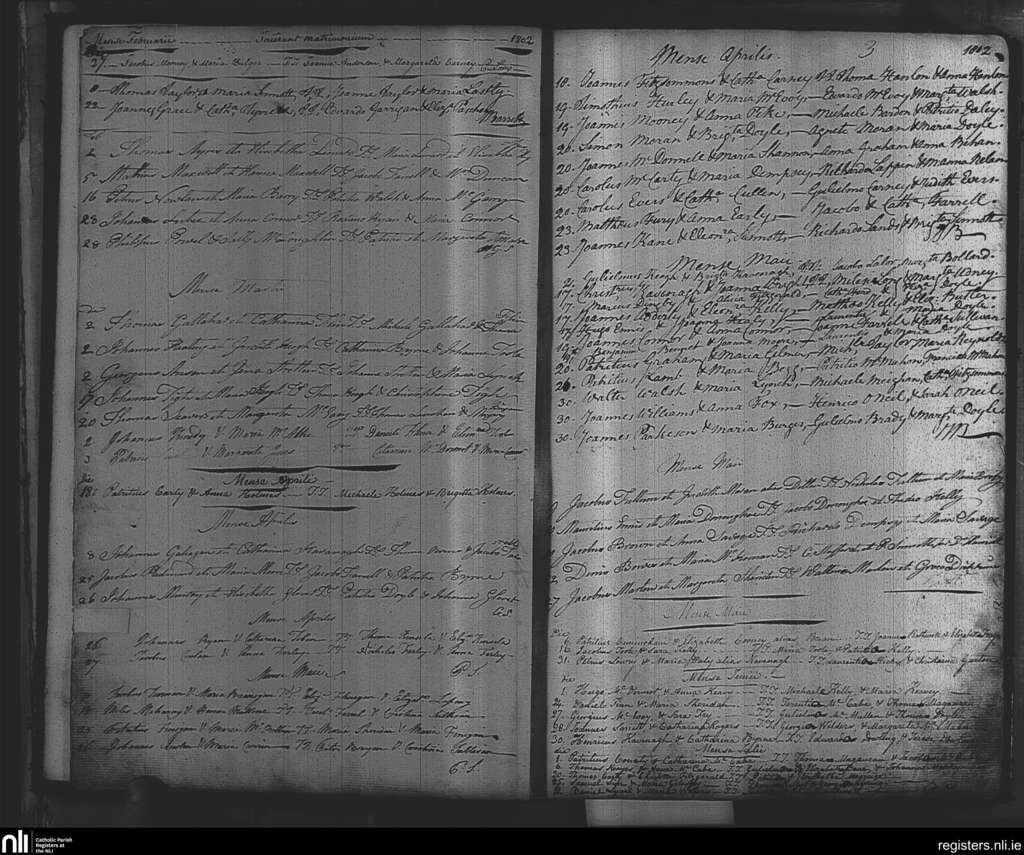 St. Nicholas', Dublin city; County of Dublin; Archdiocese of Dublin. Marriages, Feb. 1802 to July 1802