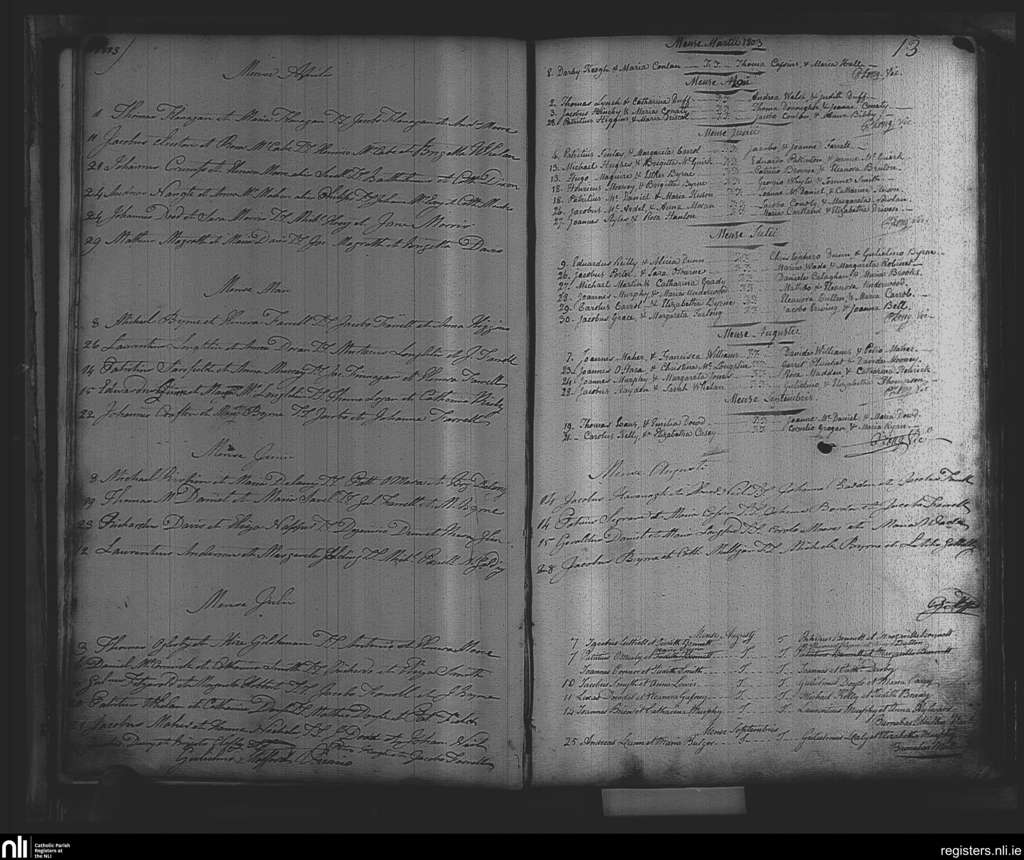 St. Nicholas', Dublin city; County of Dublin; Archdiocese of Dublin. Marriages, Mar. 1803 to Sep. 1803