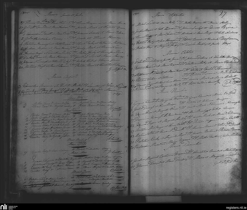 St. Nicholas', Dublin city; County of Dublin; Archdiocese of Dublin. Marriages, Jan. 1805 to Dec. 1805