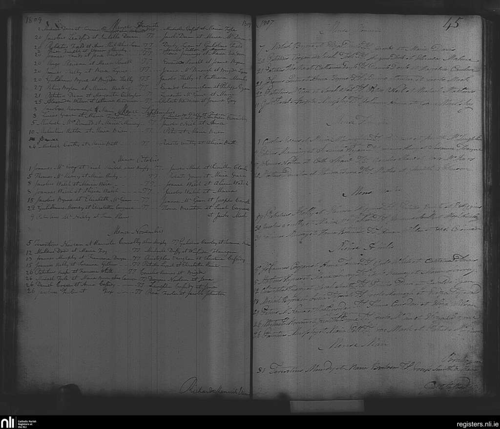 St. Nicholas', Dublin city; County of Dublin; Archdiocese of Dublin. Marriages, Jan. 1807 to Nov. 1809