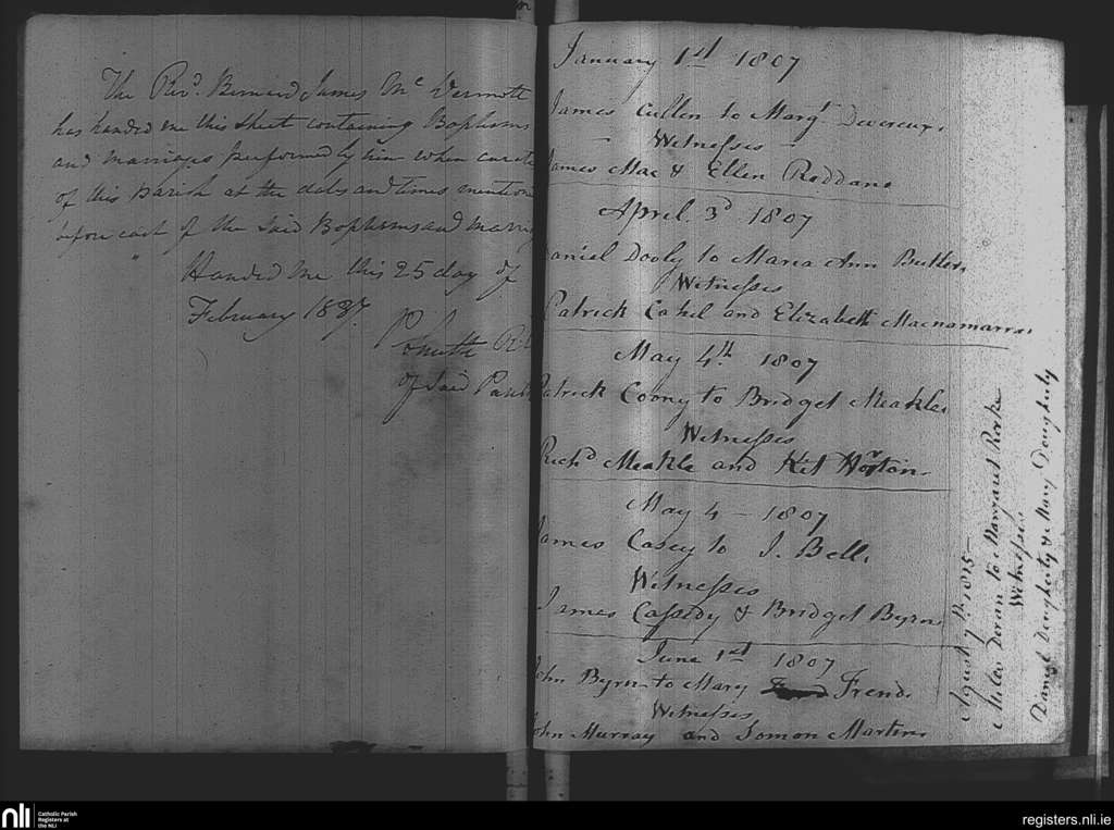 St. Nicholas', Dublin city; County of Dublin; Archdiocese of Dublin. Marriages, Jan. 1807 to June 1807