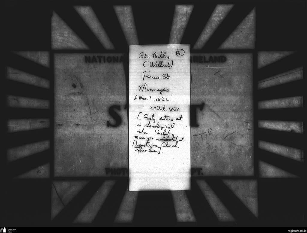 St. Nicholas', Dublin city; County of Dublin; Archdiocese of Dublin. Marriages