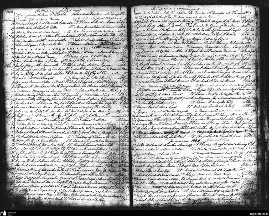 St. Nicholas', Dublin city; County of Dublin; Archdiocese of Dublin. Marriages, Sep. 1843 to Jan. 1844