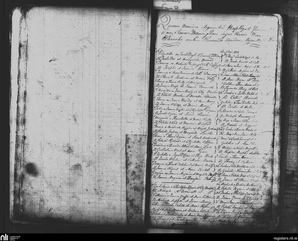 St. Nicholas', Dublin city; County of Dublin; Archdiocese of Dublin. Baptisms, Jan. 1823 to Apr. 1823