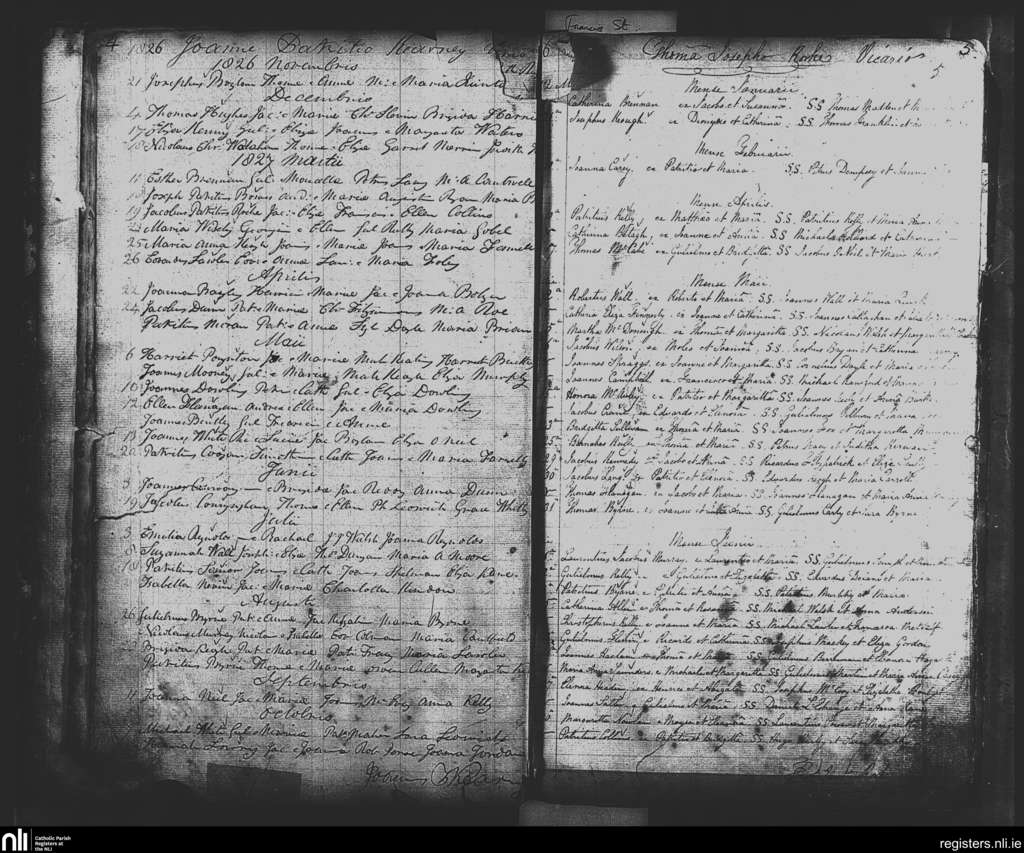 St. Nicholas', Dublin city; County of Dublin; Archdiocese of Dublin. Baptisms, Jan. 1825 to Oct. 1827