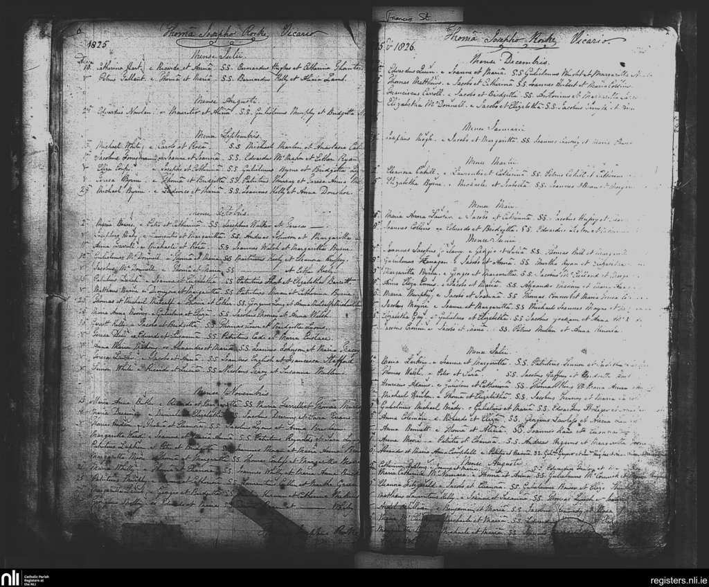 St. Nicholas', Dublin city; County of Dublin; Archdiocese of Dublin. Baptisms, July 1825 to Aug. 1826