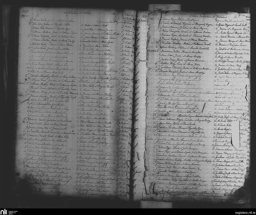 St. Nicholas', Dublin city; County of Dublin; Archdiocese of Dublin. Baptisms, Sep. 1829 to Dec. 1829