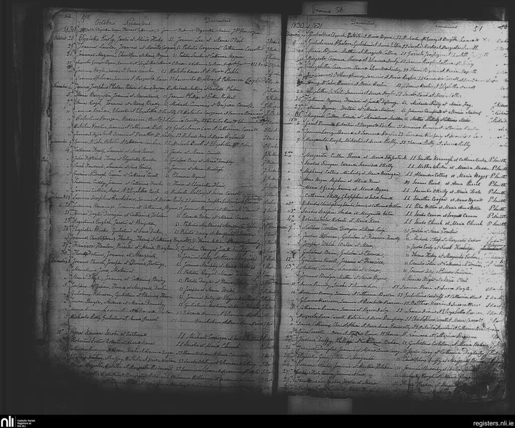 St. Nicholas', Dublin city; County of Dublin; Archdiocese of Dublin. Baptisms, Oct. 1830 to Jan. 1831