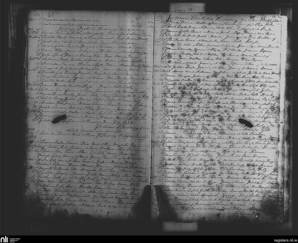 St. Nicholas', Dublin city; County of Dublin; Archdiocese of Dublin. Baptisms, July 1828 to Sep. 1833