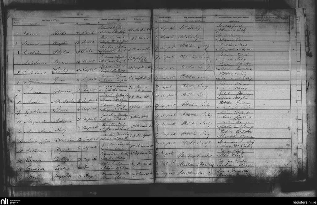 St. Nicholas', Dublin city; County of Dublin; Archdiocese of Dublin. Baptisms, Aug. 1853