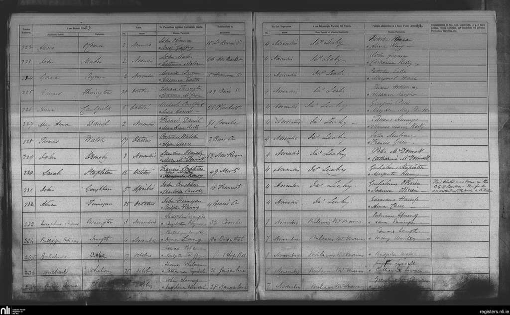 St. Nicholas', Dublin city; County of Dublin; Archdiocese of Dublin. Baptisms, Nov. 1853