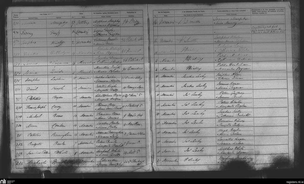 St. Nicholas', Dublin city; County of Dublin; Archdiocese of Dublin. Baptisms, Nov. 1853