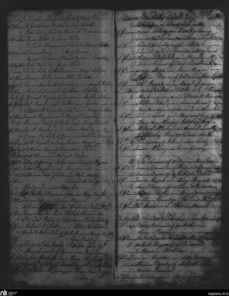 St. Nicholas', Dublin city; County of Dublin; Archdiocese of Dublin. Baptisms, July 1828