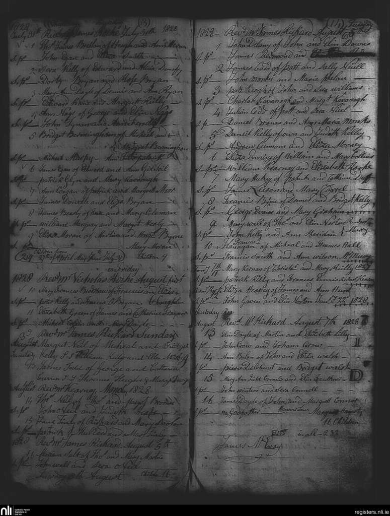 St. Nicholas', Dublin city; County of Dublin; Archdiocese of Dublin. Baptisms, Jan. 1827 to Aug. 1828