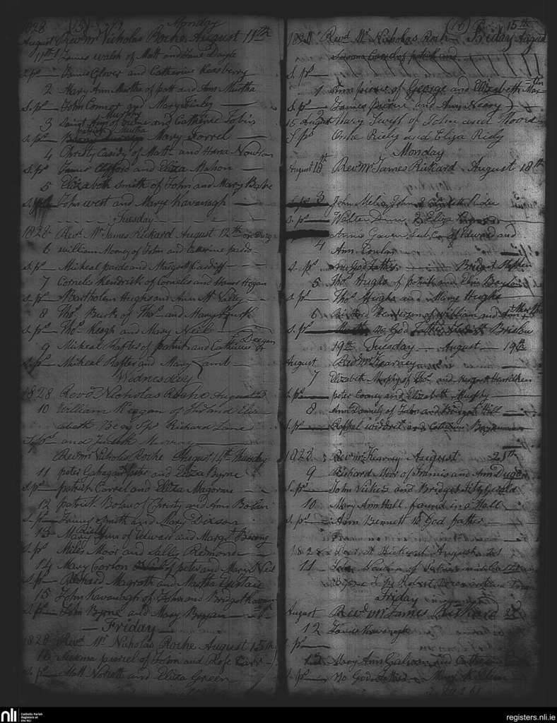 St. Nicholas', Dublin city; County of Dublin; Archdiocese of Dublin. Baptisms, Aug. 1828