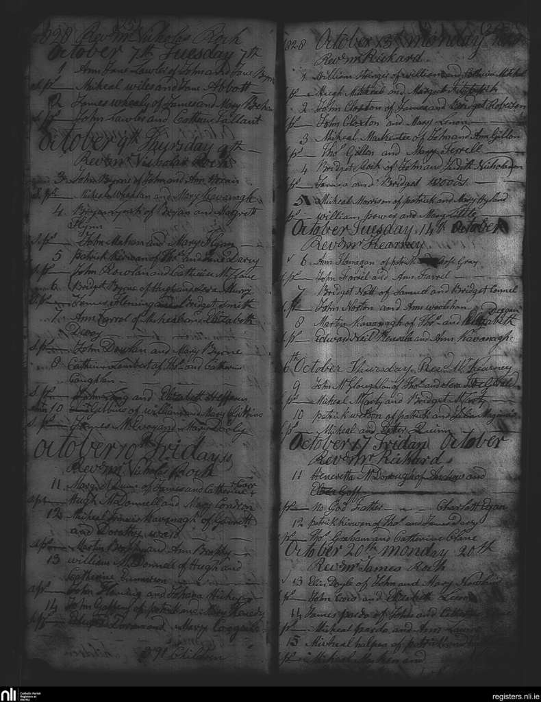 St. Nicholas', Dublin city; County of Dublin; Archdiocese of Dublin. Baptisms, Oct. 1828