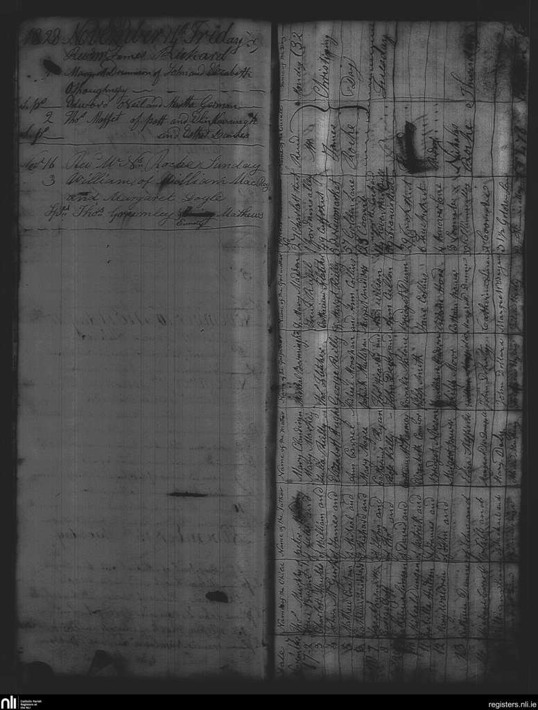 St. Nicholas', Dublin city; County of Dublin; Archdiocese of Dublin. Baptisms, Nov. 1828 to Dec. 1828