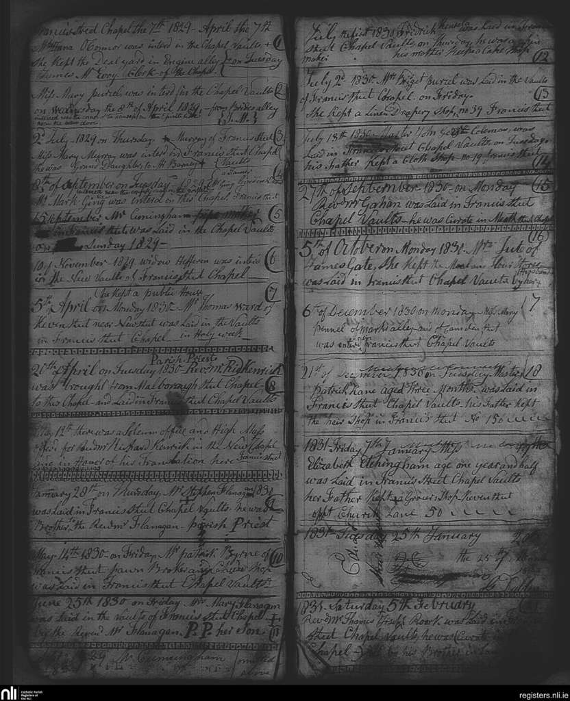 St. Nicholas', Dublin city; County of Dublin; Archdiocese of Dublin. Burials, Apr. 1829 to Feb. 1831