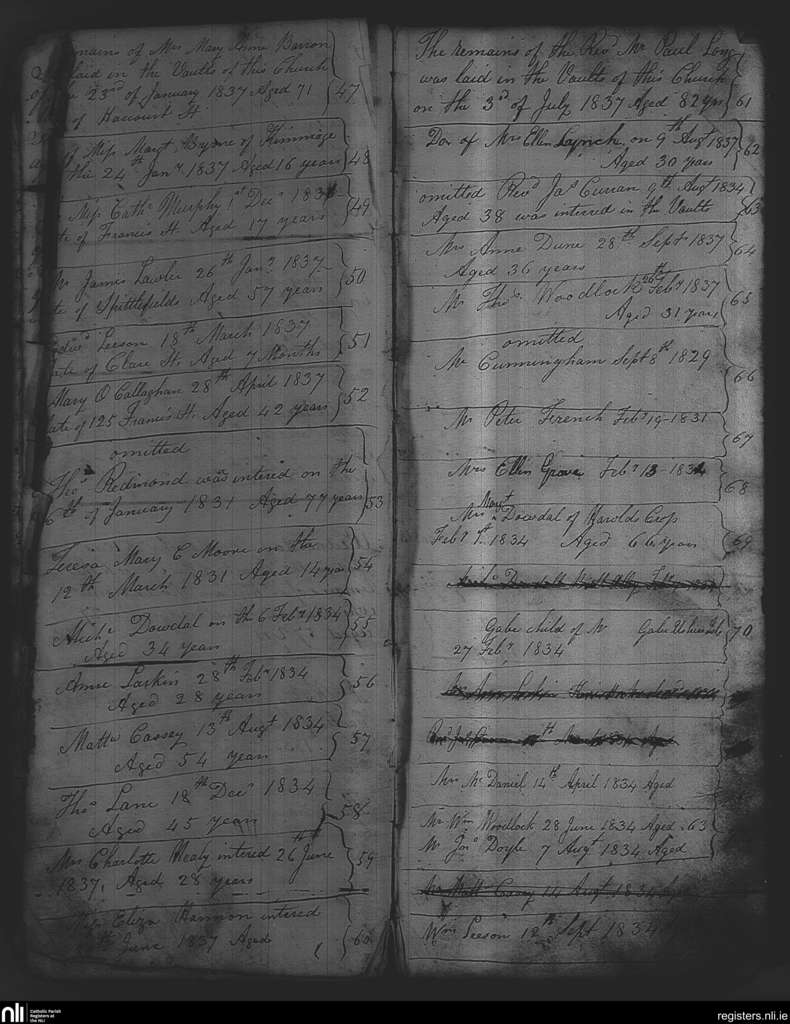 St. Nicholas', Dublin city; County of Dublin; Archdiocese of Dublin. Burials, Sep. 1829 to Sep. 1837