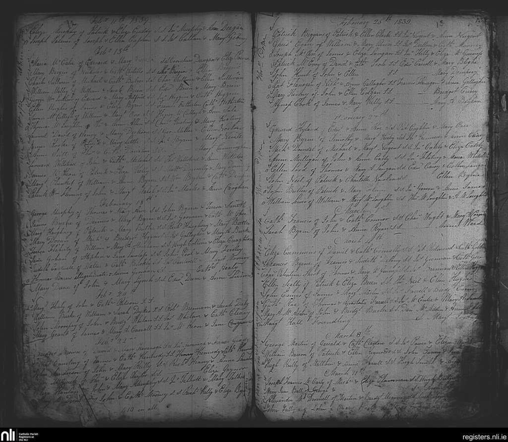 St. Nicholas', Dublin city; County of Dublin; Archdiocese of Dublin. Baptisms, Feb. 1839 to Mar. 1839