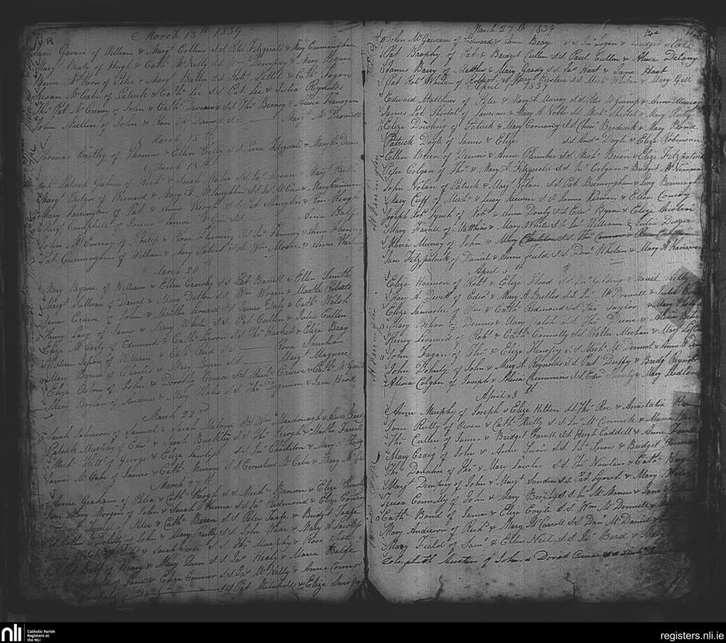 St. Nicholas', Dublin city; County of Dublin; Archdiocese of Dublin. Baptisms, Mar. 1839 to Apr. 1839