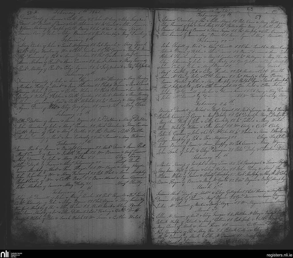St. Nicholas', Dublin city; County of Dublin; Archdiocese of Dublin. Baptisms, Feb. 1841 to Mar. 1841