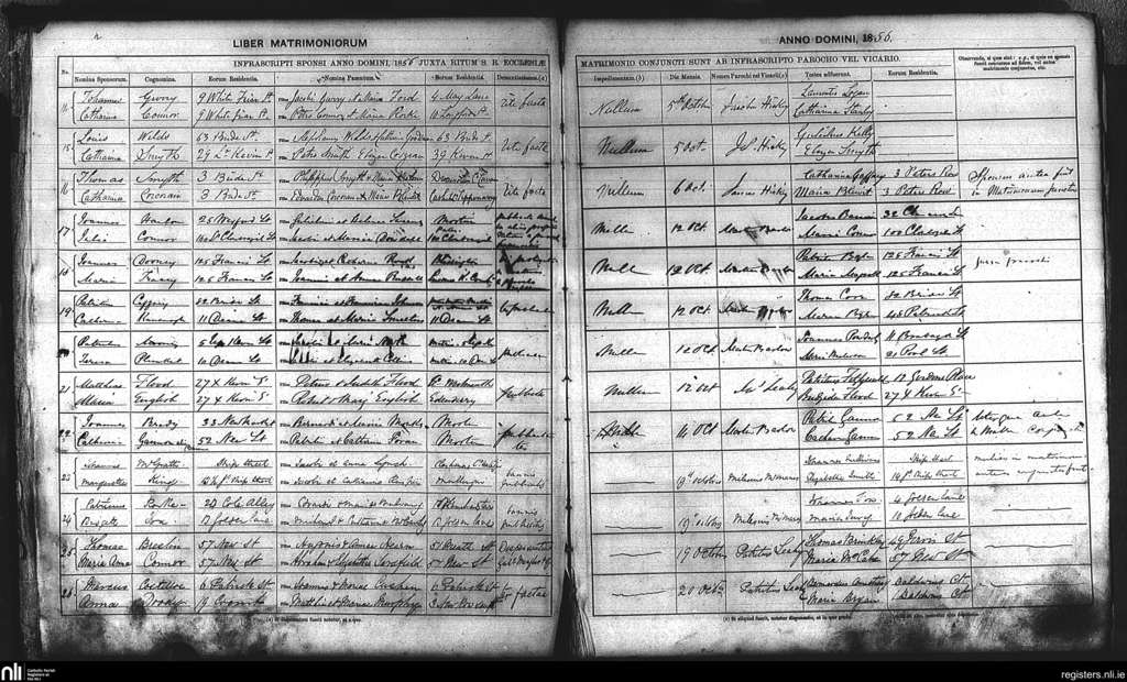 St. Nicholas', Dublin city; County of Dublin; Archdiocese of Dublin. Marriages, Oct. 1856