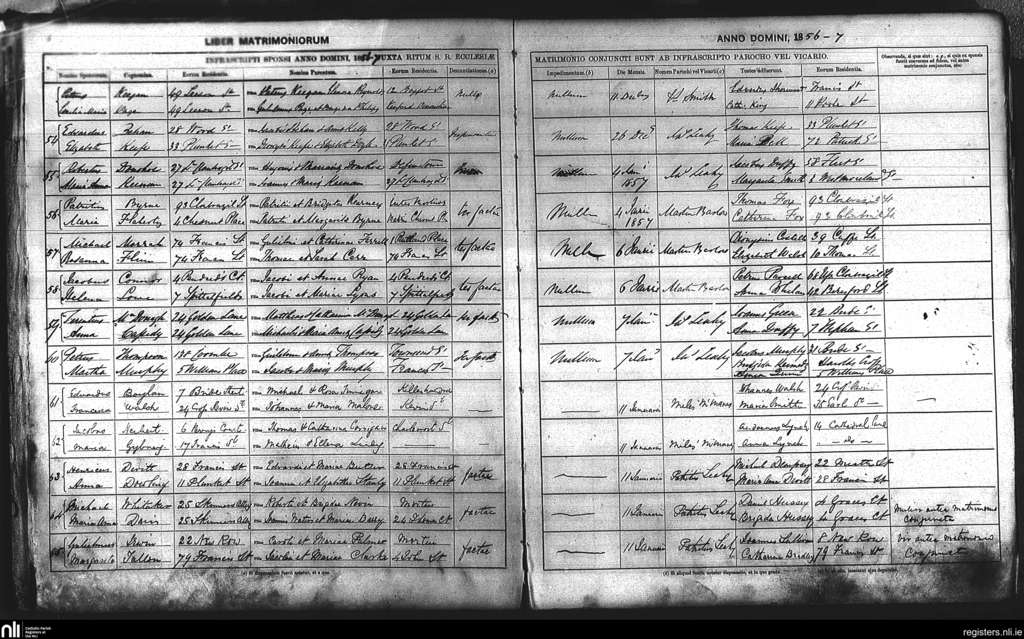 St. Nicholas', Dublin city; County of Dublin; Archdiocese of Dublin. Marriages, Dec. 1856 to Jan. 1857