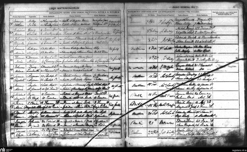 St. Nicholas', Dublin city; County of Dublin; Archdiocese of Dublin. Marriages, Feb. 1857