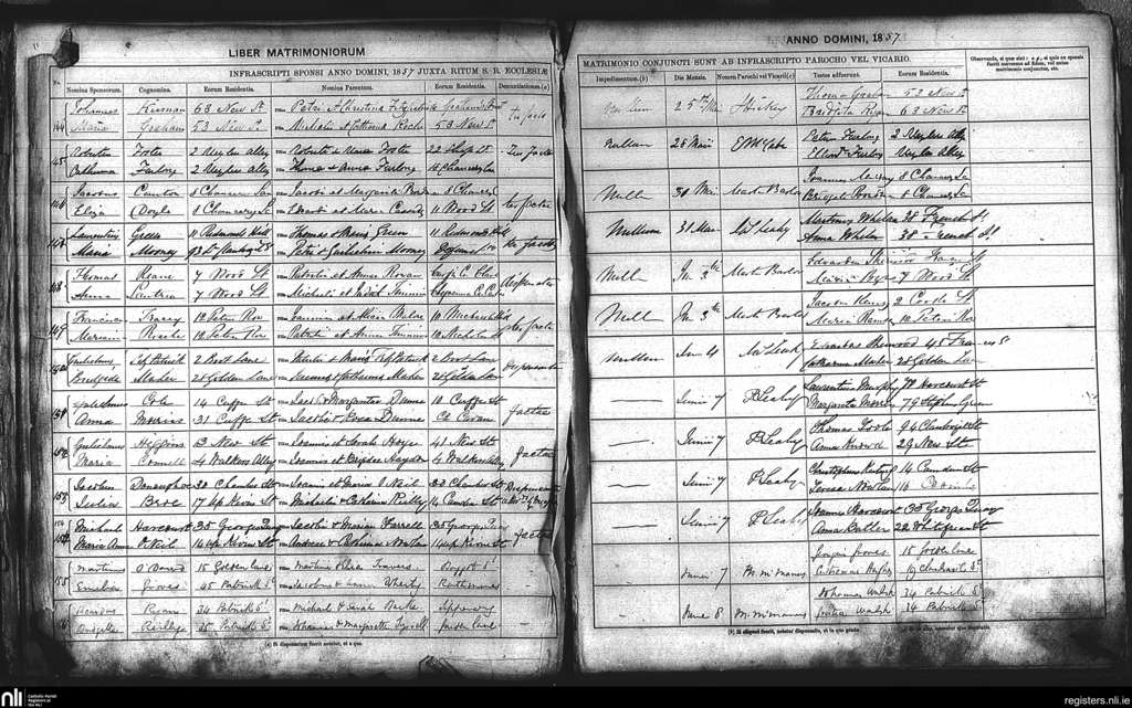 St. Nicholas', Dublin city; County of Dublin; Archdiocese of Dublin. Marriages, May 1857 to June 1857